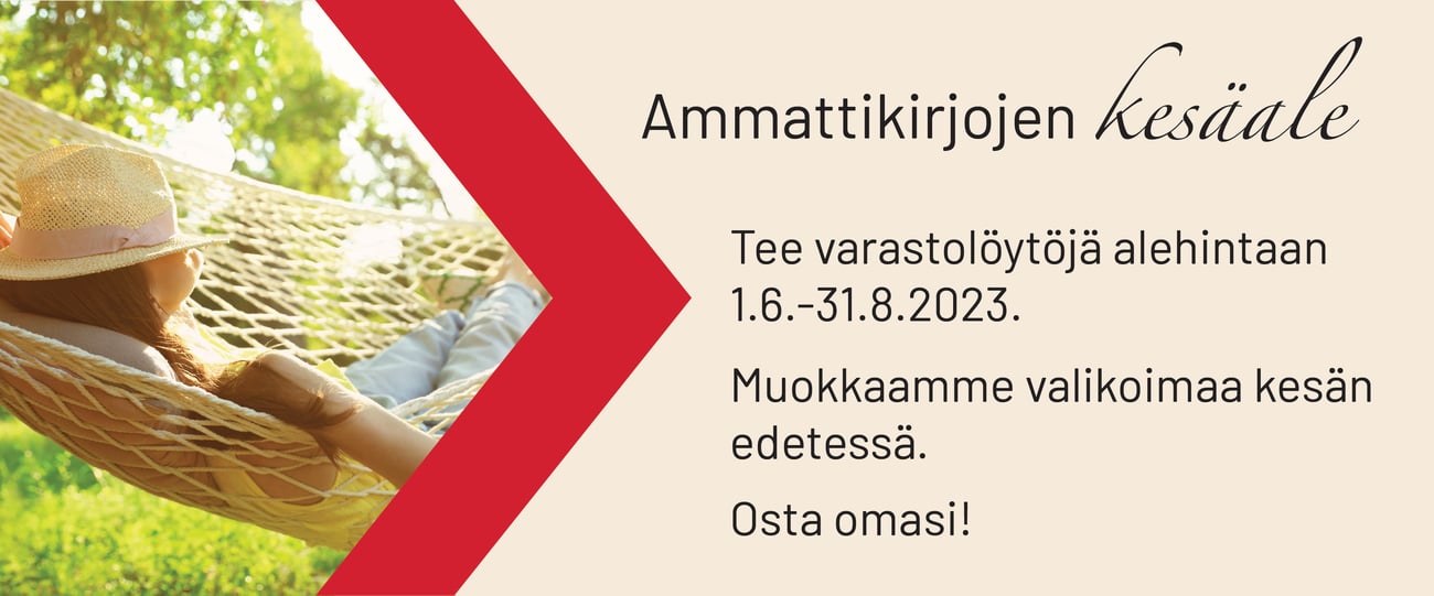 Kesän kunniaksi kolusimme varastojamme ja teimme kirjalöytöjä rakennusalan ammattilaisten tarpeisiin kiinteistösijoittajasta remontoijaan. Kokosimme kirjaverkkokauppaamme kesän ajaksi ammattikirjoja kesäaleen 1.6.-31.8.2023. Muokkaamme valikoimaa kesän edetessä, joten kannatta käydä aika ajoin vilkaisemassa - ja ostaa heti, jos sattuu osumaan tarpeeseen.